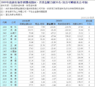 由於年關將近,TEJ為各位整理上市櫃公司2009年債券即將到期資料,並搭配2008/09財務資料計算目前公司資金壓力狀況各位參考。